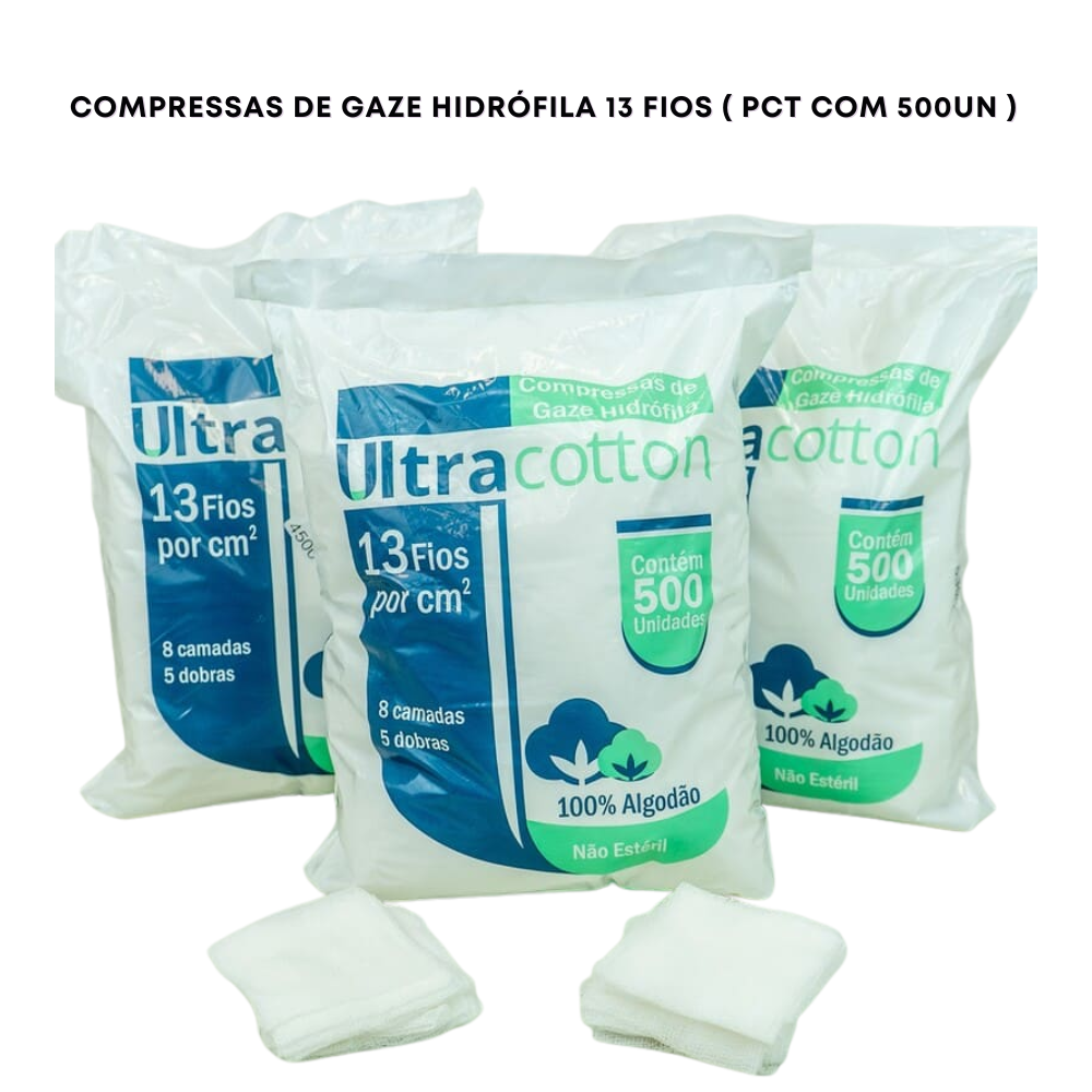 Fabricadas em 100% algodão de alta qualidade, a compressa de gaze não estéril possui 13 fios por cm² que passam por tratamento para serem macias e extremamente absorventes. São indicadas para procedimentos médicos e hospitalares.