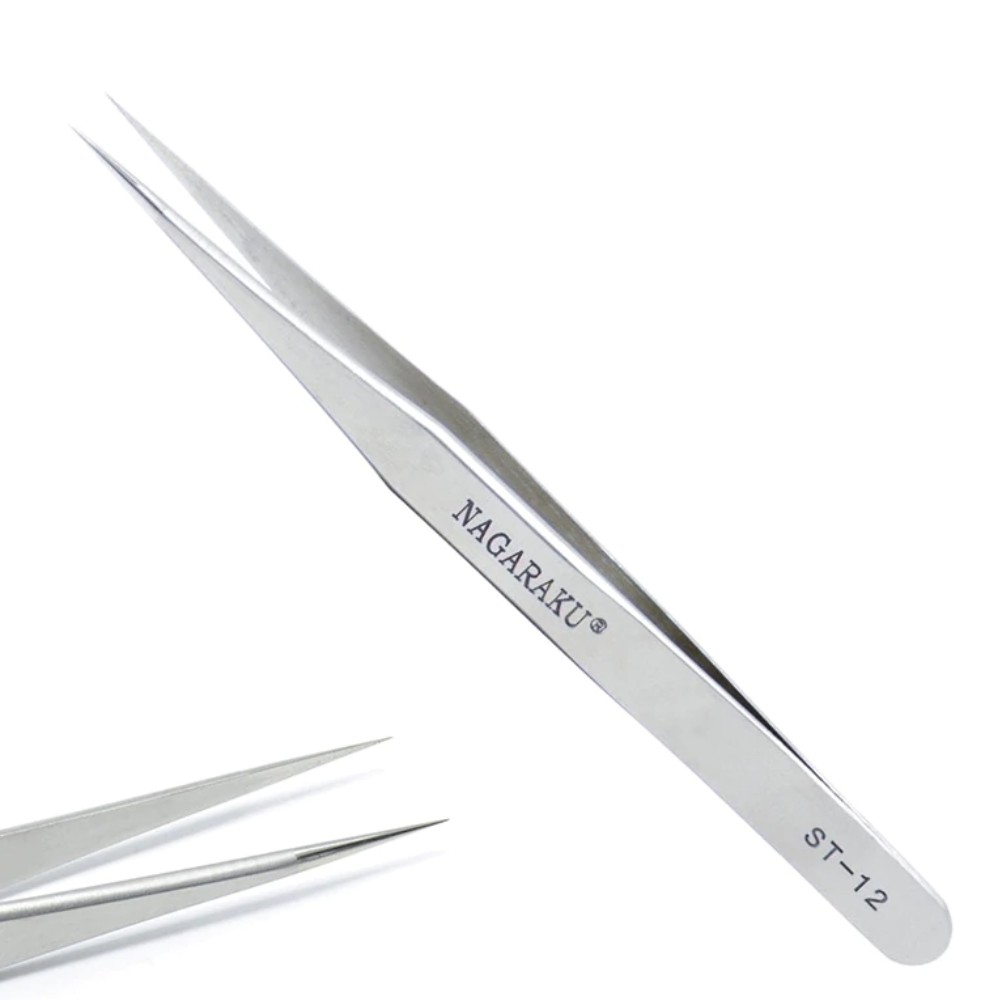 Pinça Reta ponta fina Nagaraku, original, de precisão, modelo ST -12 para alongamento de cílios.