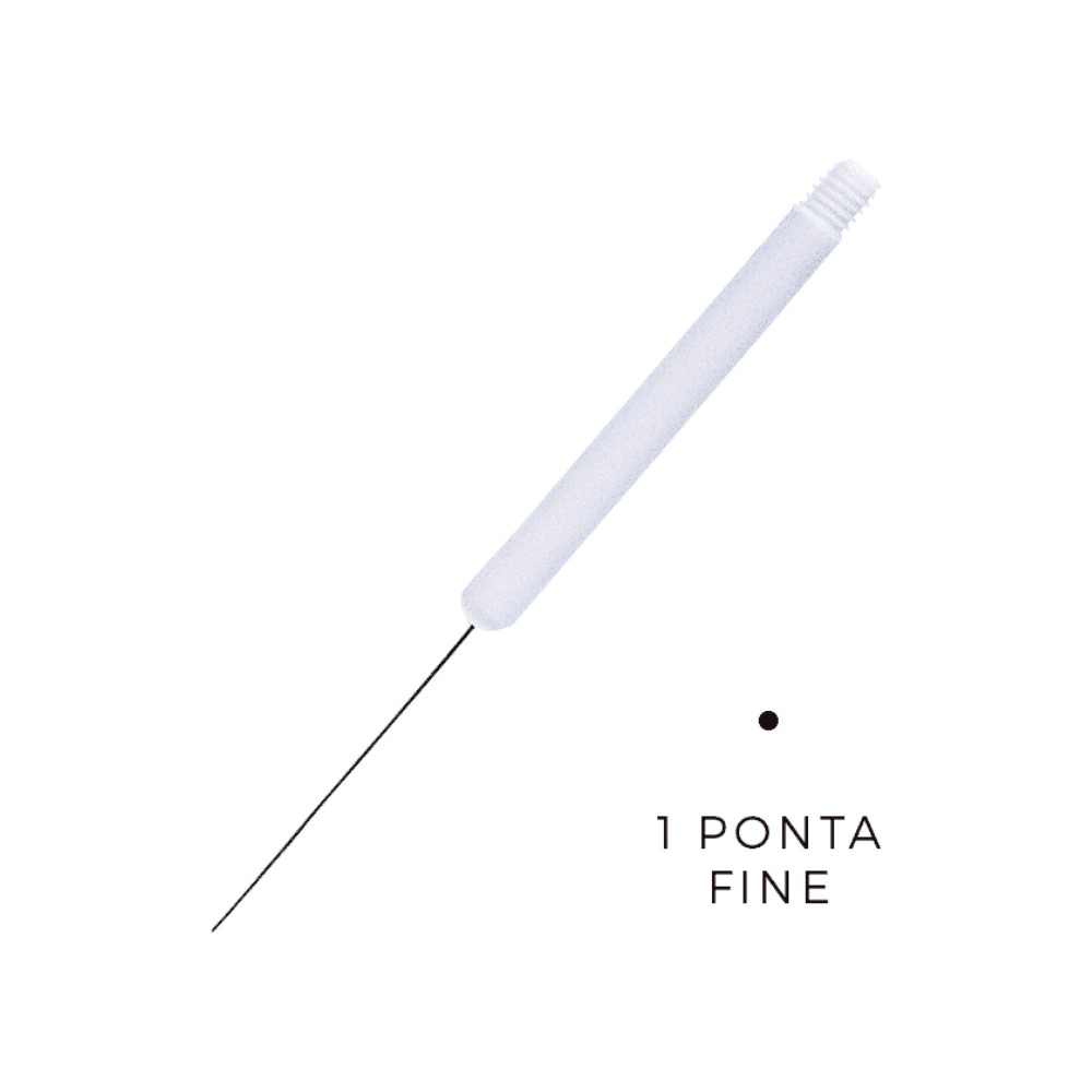As agulhas Rosca 01 ponta Fine são ideais para traços delicados, esfumados mais suaves e homogêneos e pequenos detalhes em trabalhos mais avançados, por implantarem pouca quantidade de pigmento. Elas são produzidas em aço inox, soldadas e coladas no interior da haste plástica, com uma tecnologia exclusiva das indústrias Mag Estética. Recomendada para a construção de sobrancelhas de fios finos e delicados e pontilhismo no couro cabeludo.