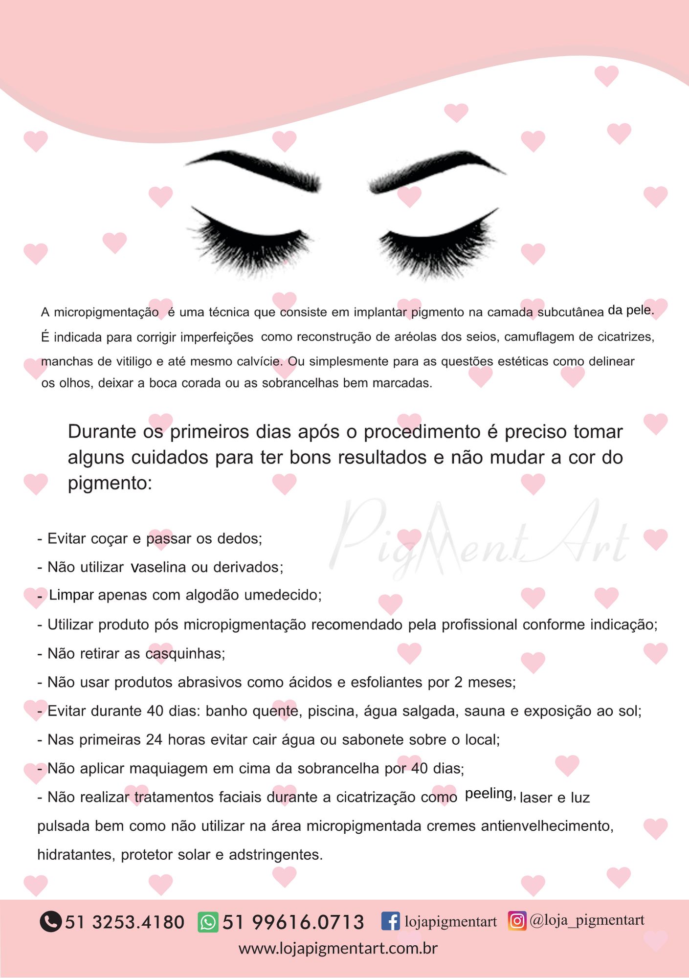 Bloco em que a profissional indica para sua cliente os cuidados em que tera que ter durante o processo de cicatrização de seu procedimento de micropigmentação.