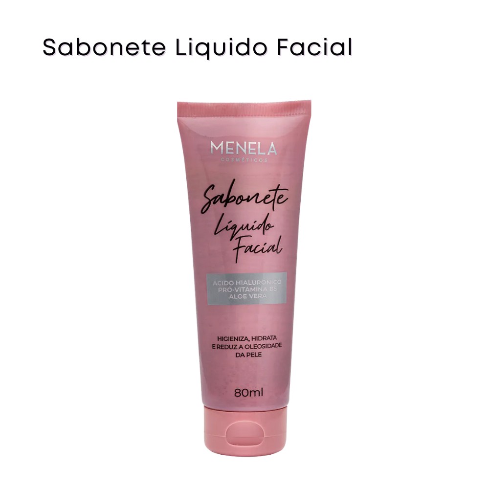 Sabonete Líquido para o rosto MENELA, além de higienizar e reduzir a oleosidade da pele, contém em sua formulação: Ácido Hialurônico, Pró-Vitamina B5 e Aloe Vera, que auxiliam no preenchimento e hidratação da pele.